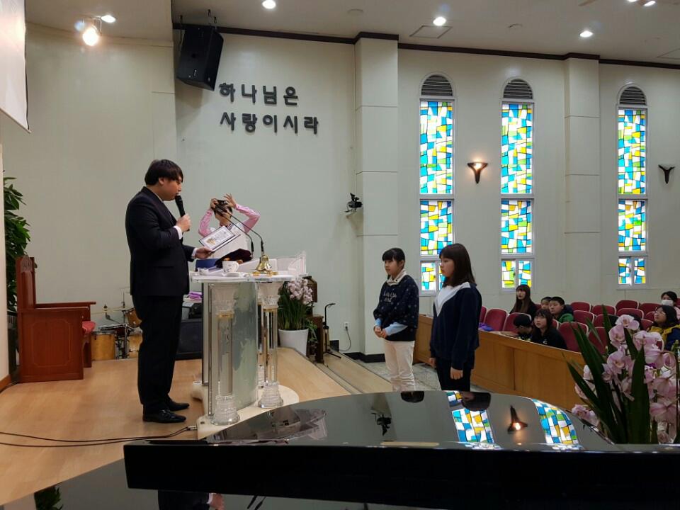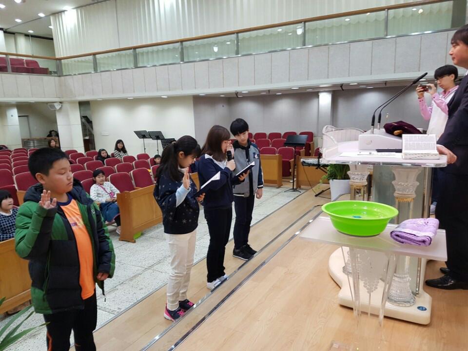(3.12주일) 어린이교회에서 목자 임명식이있었습니다. 행복한 목장에 송은지어린이와 빛과등불에 김다혜어린이가 2017년 새로운 어린이가 목자가 되었습니다. 작년에 받은 전지성,김채민목자와함께 새로운 마음으로 다시 서약을하고 새수식을 가졌습니다. 어린이 목자들을 통해 영복교회가 부흥되도록 기도해주세요 ^^