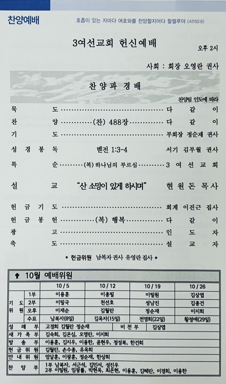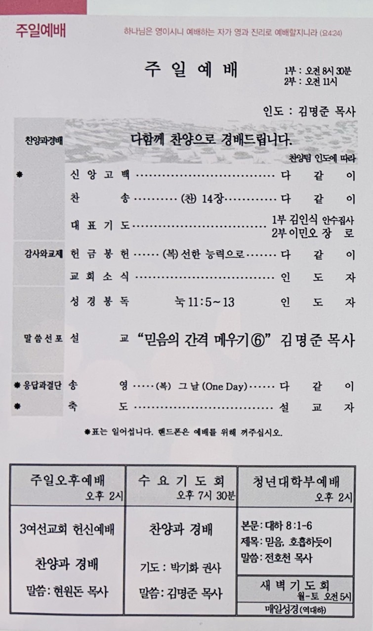 | 이전글 | 10월5일 교회 주보 올립니다. | 성남진 | 2025.10.04 | 0 | 39 |